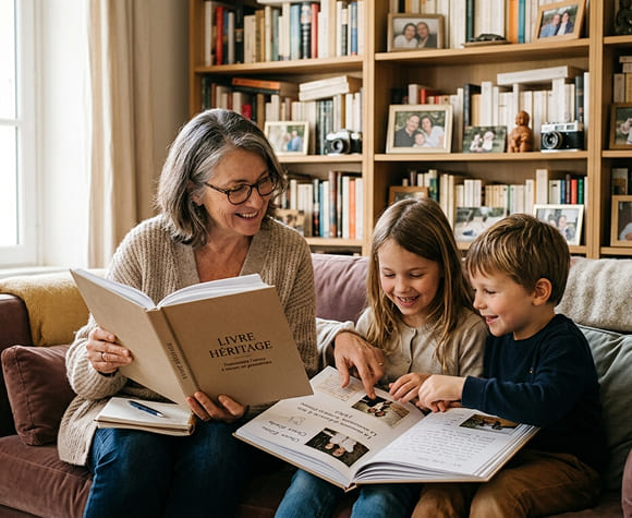 Transmettez l'essentiel à ceux que vous aimez. Un récit précieux né de vos souvenirs et de votre parcours de vie. Chaque chapitre devient un lien entre les générations, offrant un témoignage vibrant à vos proches. Ensemble, nous façonnons un ouvrage unique qui capture l'émotion de vos instants partagés et la force de vos valeurs. Offrez bien plus qu’un livre : un héritage vivant, une trace indélébile gravée au cœur de votre famille. Un présent d'exception pour célébrer vos liens, aujourd'hui et pour toujours.